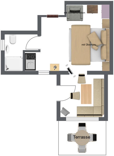 Singleküche mit Kühlschrank und 2 - Kochplatten