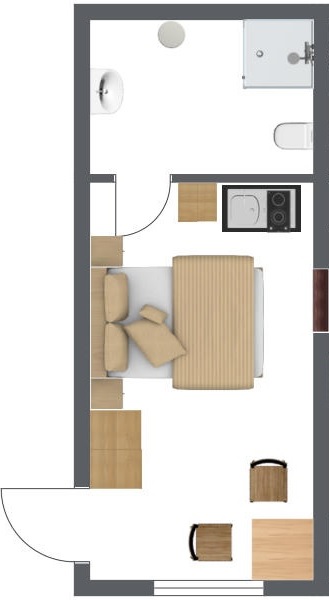 Singleküche mit Kühlschrank + 2 - Kochplatten