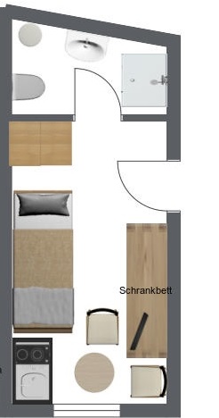 Singleküche mit Microwelle + Kühlschrank + 2 - Kochplatten