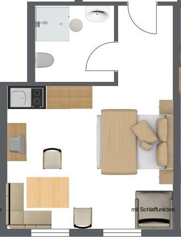 Singleküche mit Kühlschrank + 2 - Kochplatten